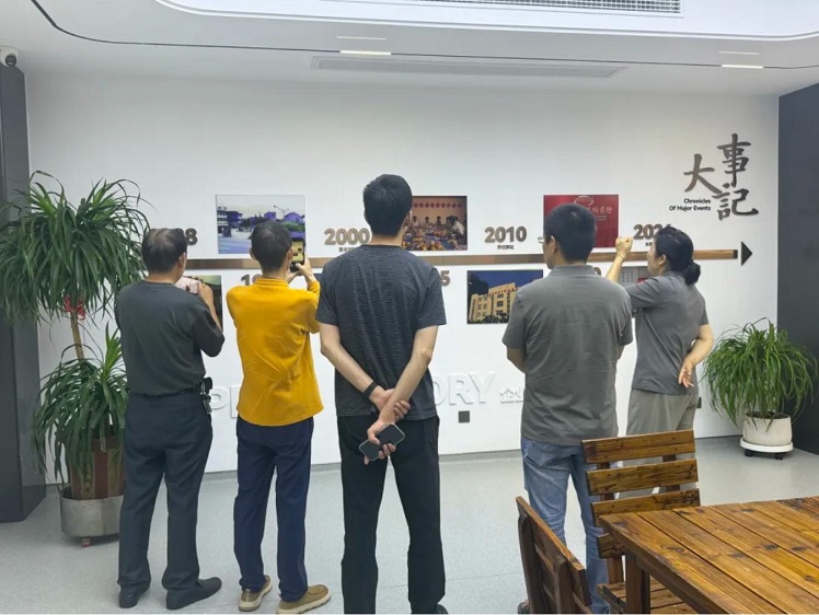 Därefter ledde generaldirektören Yu klienterna att besöka gruppens huvudkontor. Denna "Chronicle" dokumenterar varje avgörande ögonblick sedan vår etablering. Så snart YU: s chef gick in i huvudkontorets kulturella utställningshall, pekade han på de gamla fotona och texterna på väggen och började sakta berätta klienten om företagets historia. "1988 startade vi från en liten verkstad. Vid den tiden fastställde vi principen att" bygga företaget baserat på kvalitet och behandla personer med integritet ". Nu har 37 år gått, och denna ursprungliga avsikt har aldrig förändrats." I utställningshallen visas också olika certifikat för utmärkelser, kvalificeringsdokument och servicefallstudier som erhållits av Enterprise. När kunderna slutade för att titta, tillade Yu, "Vi producerar inte bara" hårdvara "för våra produkter; vi måste också tillhandahålla" tjänster ". Precis som vad som är skrivet på denna vägg," omvandla kundernas behov till vår strävan ", är detta principen graverade i alla anställdas hjärtan."