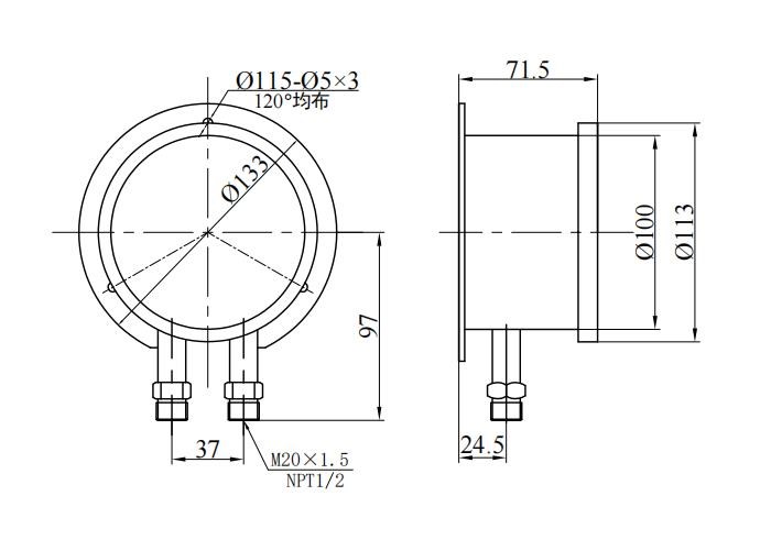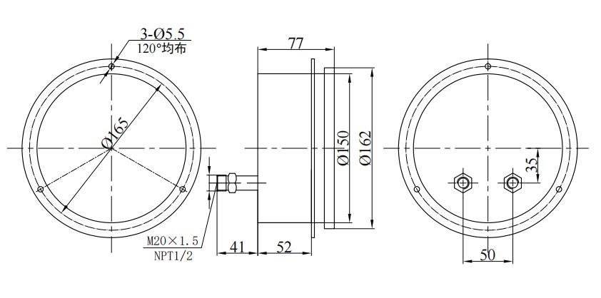 3. Joint trådstorlek: Konventionell M20 × 1.5 , NPT1/2 (eller kundens beteckning);