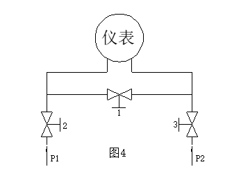 4. Som visas i figuren 4 , Balans (säkerhet) ventil (ventil 1 ) bör ställas in framför instrumentets höga och lågtrycksingångar under installationen och bör vara i öppet läge, och balansventilen ska stängas efter ventilen 2 and ventil 3 öppnas alla.