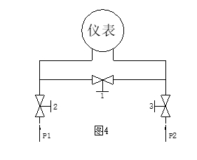 4. Som visas i figuren 4 , Balans (säkerhet) ventil (ventil 1 ) bör ställas in framför instrumentets höga och lågtrycksingångar under installationen och bör vara i öppet läge, och balansventilen ska stängas efter ventilen 2 and ventil 3 öppnas alla.