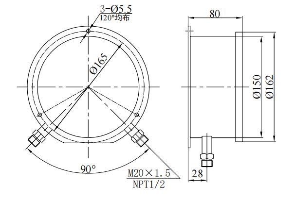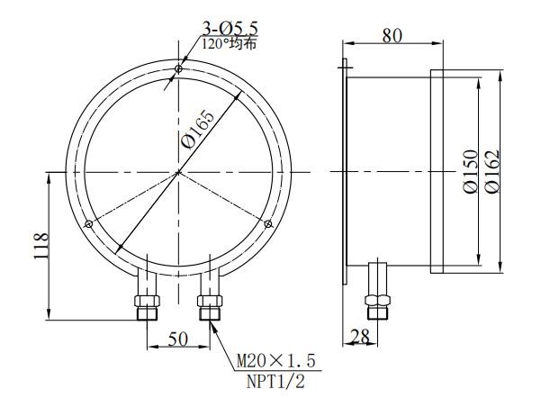 2. Joint trådstorlek: Konventionell M20 × 1.5 , NPT1/2 (eller kundspecificerad);