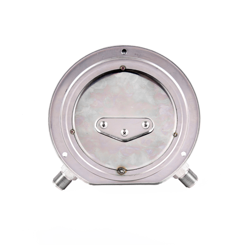 När olika tryck appliceras (i allmänhet är högtrycksänden högre än lågtrycksänden) är kraften för de två Bourdon-rören som verkar på det rörliga stödet inte lika, så att motsvarande förskjutning genereras respektive, och växelöverföringsmekanismen drivs och förstärks, och det differentiella tryckvärdet mellan de två indikeras efter att pekaren är defekt är defekt.