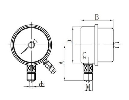 ◆ Användning: Denna typ av instrument är lämplig för att mäta trycket på vätskor, gaser eller ångor utan explosionsrisk, ingen kristallisation, ingen stelning och ingen frätande effekt på koppar- och kopparlegeringar. När den är utrustad med en lämplig krets kan den skicka ett larm eller automatisk kontroll till trycksystemet som ska mätas och kontrolleras.