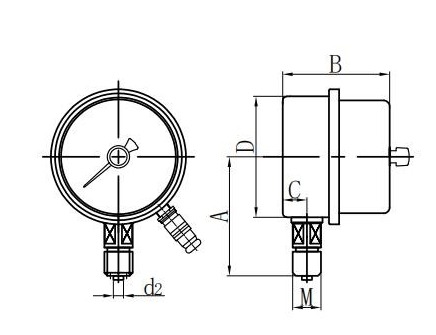 ◆ Användning: Denna typ av instrument är lämplig för att mäta trycket på vätskor, gaser eller ångor utan explosionsrisk, ingen kristallisation, ingen stelning och ingen frätande effekt på koppar- och kopparlegeringar. När det är utrustat med ett lämpligt kretssystem kan det skicka ett larm eller automatisk kontroll till trycksystemet som ska mätas och kontrolleras.