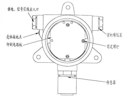 Figur 4 visar beskrivningen av gasdetekteringssändarens basplatta terminal: